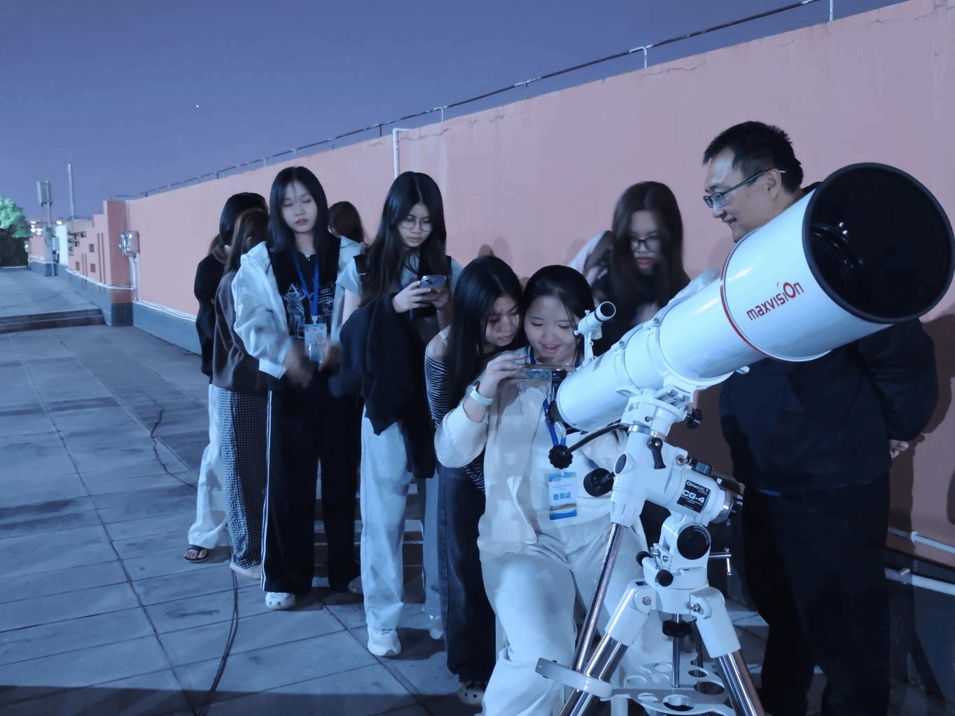 开营仪式上,营员们观看了学校国际化办学成果宣传片,直观感受学校的办学特色与文化底蕴。本次汉语营以“沉浸式体验、互动式学习”为核心,为泰国师生量身定制了汉语口语、汉字书写、古筝演奏、京剧赏析等中华文化课程。依托学校数理学院天文研究团队,营员们享受了一次观测天象的实践课,让培养科研兴趣成为跨文化交流新桥梁。活动中,营员们还探访云南省博物馆、玉溪青花街、汇龙生态园等地,近距离感受云南悠久历史与玉溪城市魅力。