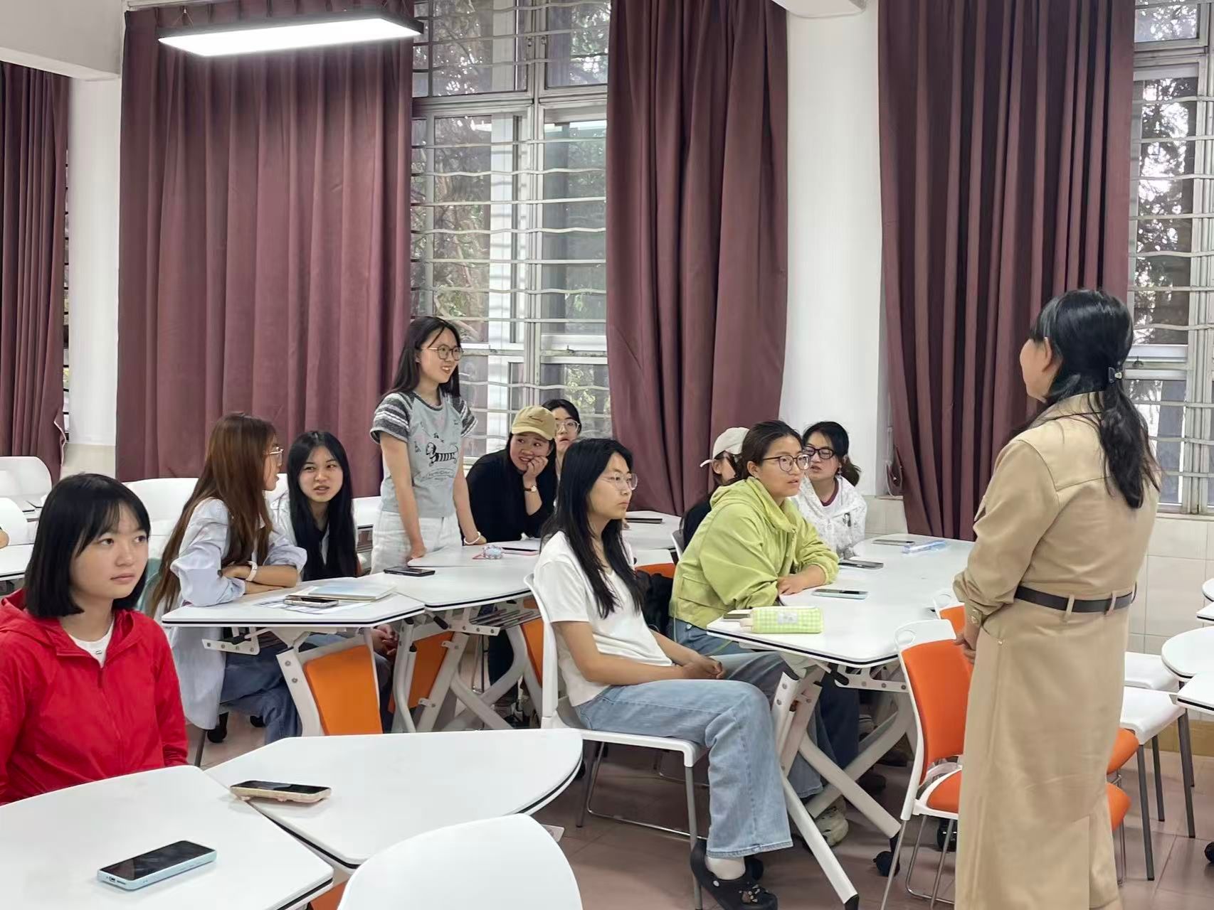 在互动交流环节,现场学生踊跃提问,就项目申请流程、需要具备的条件、实习岗位分配等关心的问题与吴老师进行了深入交流。现场气氛热烈,同学们对出国留学和海外实习表现出浓厚兴趣。