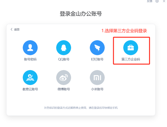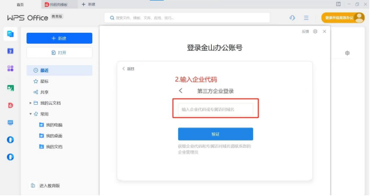 l PC端登录 1. 打开WPS 365,点开右上角立即登录按钮,选择其他登录方式-选择第三方企业码登录