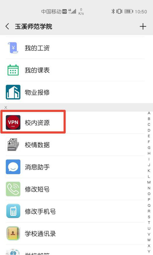 (4)使用玉溪师范学院企业微信或企业公众号可以免登录使用webvpn系统。