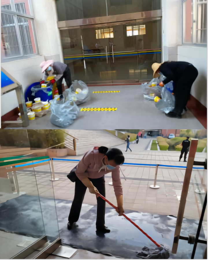 根据《云南省政府教育督导委员会办公室关于2022年春季学期综合督导检查疫情防控存在问题的整改报告》,公司认真梳理,明确责任,并结合工作实际抓好整改落实工作。修改完善了《玉溪师范学院资产经营公司校园环境卫生及消杀检查管理制度》,在卫生间、电梯、食堂、会议室、场馆、办公楼等消杀记录本上加上消毒剂浓度的配比及使用说明。为更好地做好消杀工作,3月22日公司安排云南公安民警综合训练基地黄齐林教授、博士作《后疫情时期校园环境常规消杀及个体防护基本知识培训》,对保洁员进行了消杀工具、消杀原料配比及个人基本防护知识培训,讲座结束后对参加培训的人员进行随堂测试。