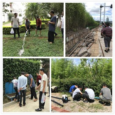 ①为创建文明学校,积极配合做好学校精神文明单位申报创建工作,对出租商铺、树蕙园、东大门周边环境进行整理,清理下水道和安全巡查;②积极配合后勤服务中心完成配电室维护、预防性试验和教职工楼蓄水池清洗消毒工作,配合后勤服务中心完成3幢职工宿舍搬迁清理工作;③对田径场1、2、3号足球场的杂草进行了清理,拆除了各场馆的过时标语;