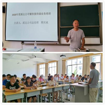为加强食品安全监管,增强餐饮从业人员食品安全风险防范意识,保障师生用餐安全,6月16日下午,溪达公司在13教410室召开餐饮从业人员业务培训会,餐饮接待部工作人员、滋味苑食堂和风味小吃管理人员约30余人参加培训,培训过程中,黄庆斌总经理从食堂管理机制、食品安全卫生监管、疫情防控工作三方面进行深入讲解。他指出,食堂管理要按照国家五部委下发的《关于进一步加强高等学校学生食堂工作的意见》内容,不断建立完善平衡的供需机制、合理浮动的价格机制、公平有序的竞争机制和多位一体的监管机制,并结合我校食堂基本保障大伙和风味小吃相结合的模式,努力实现优势互补,满足师生对饮食多样化需求。在日常管理过程中,遵循食品安全统一监管、大宗物资统一采购、基本大伙米饭统一加工、餐具统一清洗消毒、用餐场地统一保洁、菜品统一留样、规范处理泔水。同时,从食材贮存、加工、售卖等流程,员工管理科学、规范、高效、安全等方面作了要求。另外,结合当前疫情防控工作,从采购、加工、饮食供应服务等方面提出指导性意见和建议。