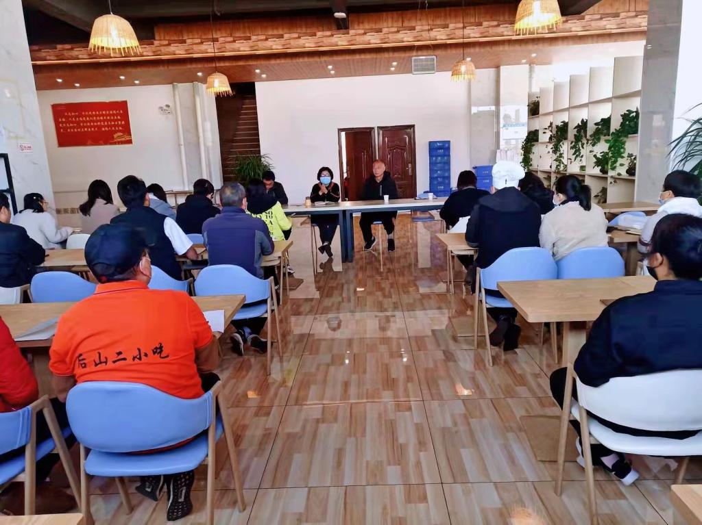 民以食为天,食以安为先,食品安全是校园安全稳定的重要一环,也是保障师生员工健康学习生活的基础。为共同守护广大师生员工“舌尖上的安全”,3月1日上午,资产经营有限公司多部门联合组织召开2023年春季学期校园食品安全工作会。公司党支部书记李石屏,副总经理黄庆斌,综合办公室、经营管理部、餐饮项目部负责人,各食堂、小吃店负责人共40余人参加了会议。