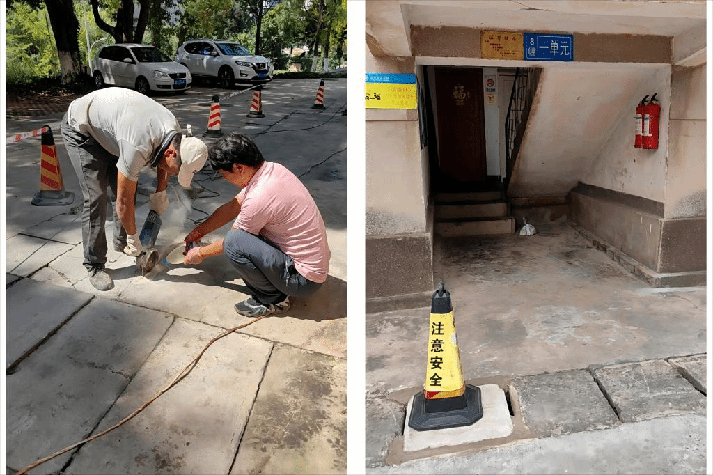 近期,院本部教职工生活住宅区部分楼栋下水道盖板出现破损现象,盖板损坏的缝隙存在一定安全隐患,车辆碾压产生的噪音影响周边住户休息。发现情况后,公司立即在周边设置临时性安全标识,并联合后勤服务中心,及时更换盖板、填补缝隙、加固底层,完成破损下水道盖板修复工作,目前使用情况良好。
