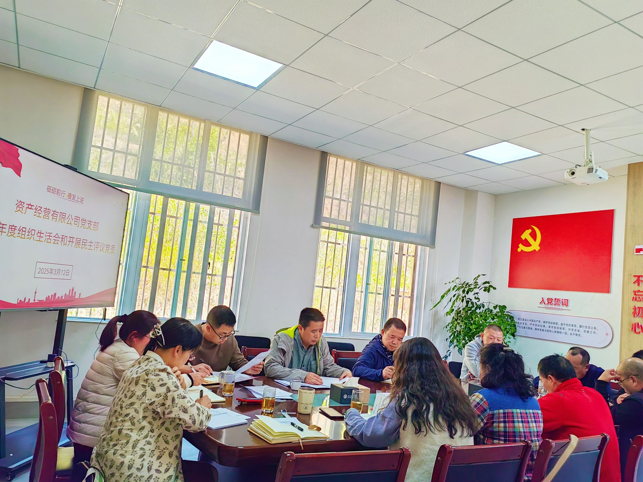 2025年3月12日,资产经营有限公司党支部在公司党员活动室召开2024年度组织生活会暨民主评议党员大会,支部全体党员参加了会议,支部书记王永主持会议,学校职能部门党委委员赵海涛列席会议指导工作。