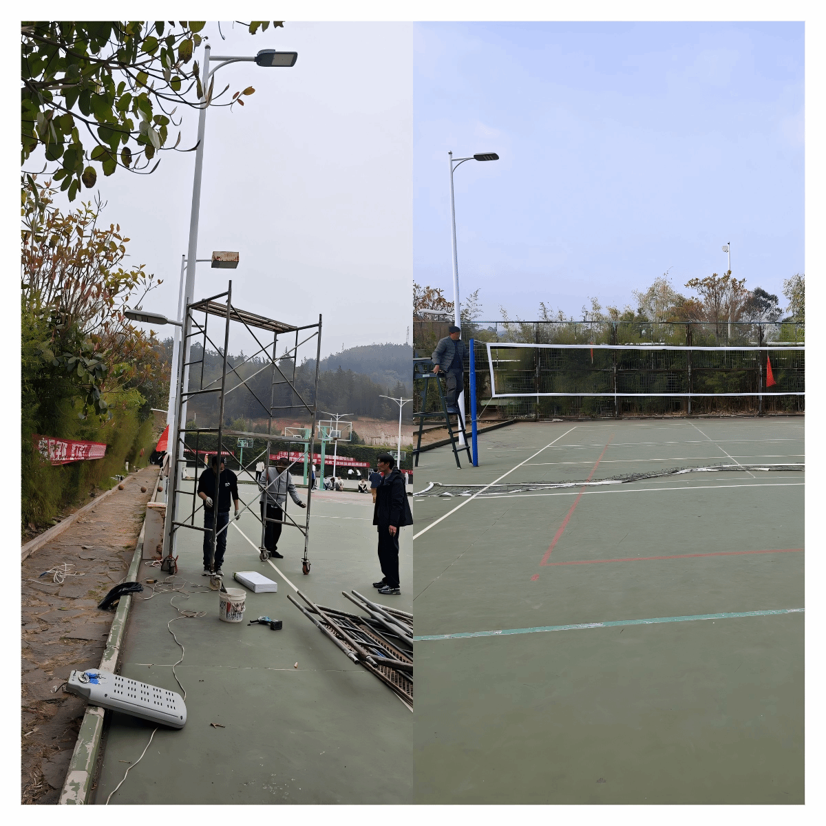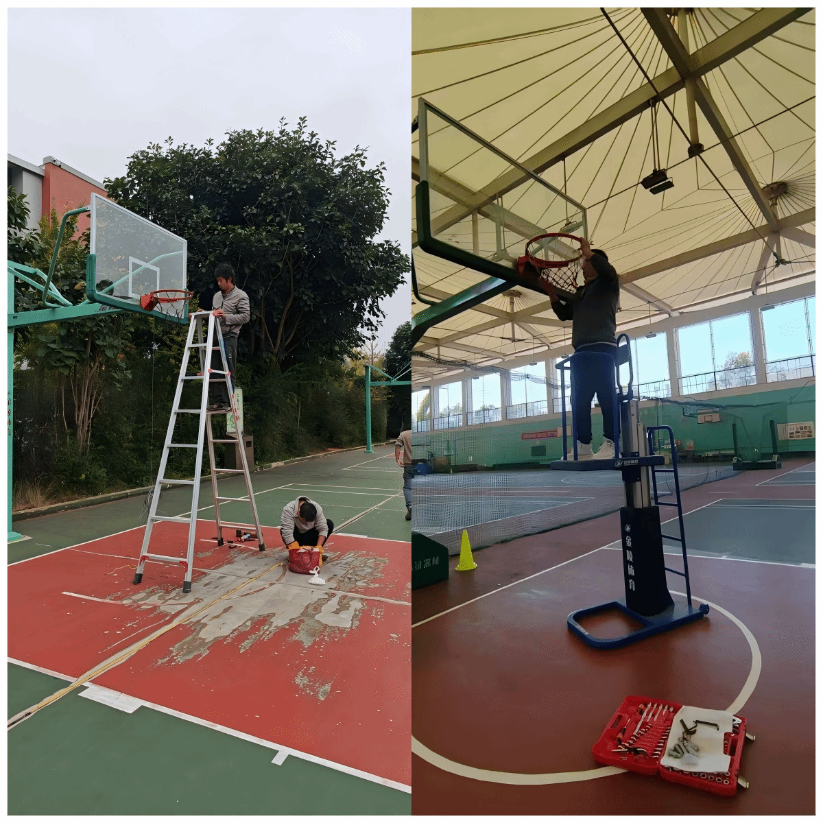 重视赛前安全保障。 提前巡检与维护篮球场、足球场、排球场等比赛场;组织专业维修团队及时修复破损的篮球架、足球门,球场地面平整;调试与优化馆内照明系统、通风设备,为运动员和观众营造良好的观赛与竞赛环境。