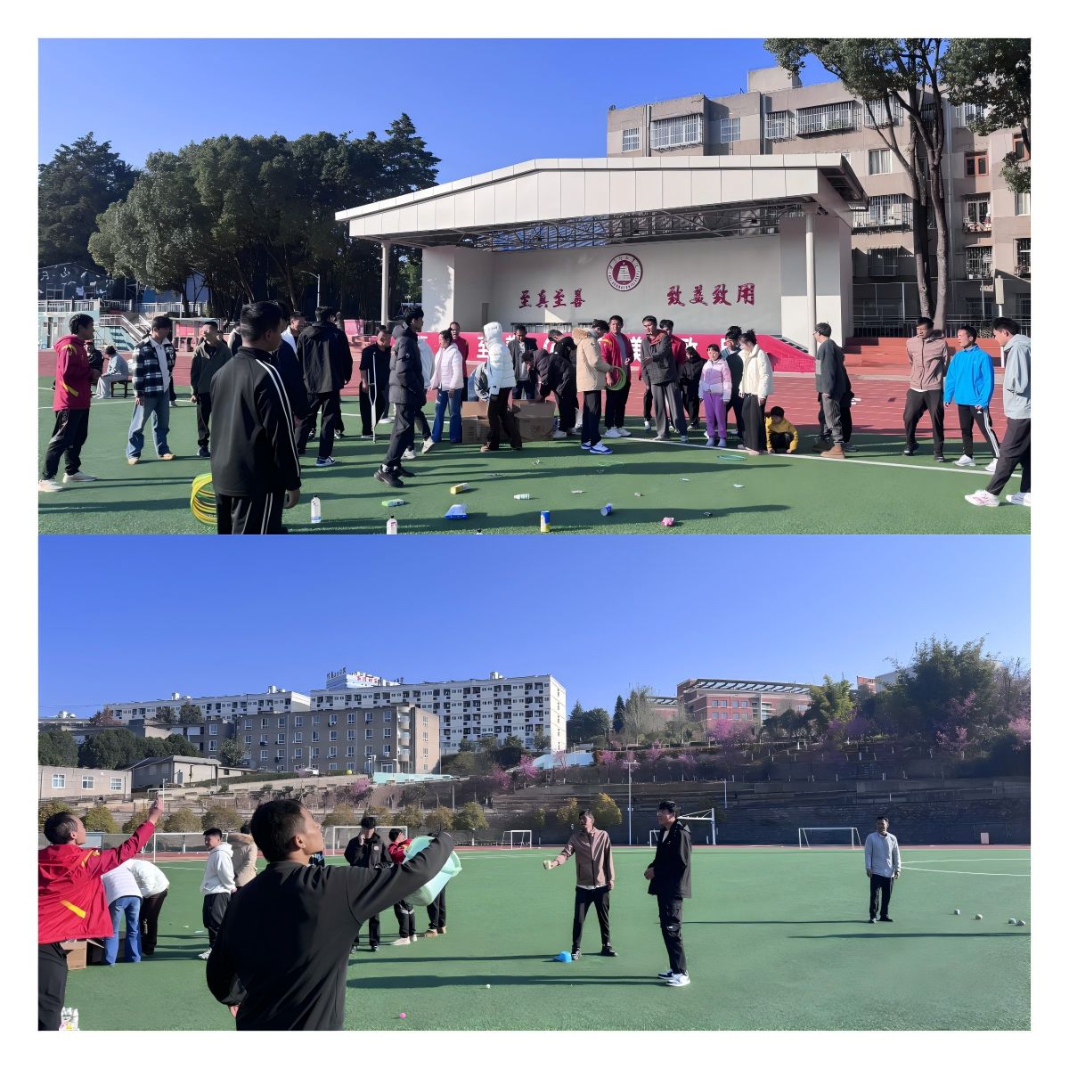 上午 9 时,全体参训人员及运动员家属齐聚田径场,共同开启欢乐的活动时光。本次趣味活动设置了摸石过河、套圈游戏、运球接力赛、扔沙包目标赛四大趣味项目,兼具趣味性与协作性。活动现场,大家热情高涨、踊跃参与,在各个项目中默契配合、奋勇争先,欢声笑语不断。无论是紧张刺激的接力比拼,还是轻松有趣的套圈互动,都充分展现了全体成员积极向上、团结协作的精神风貌。