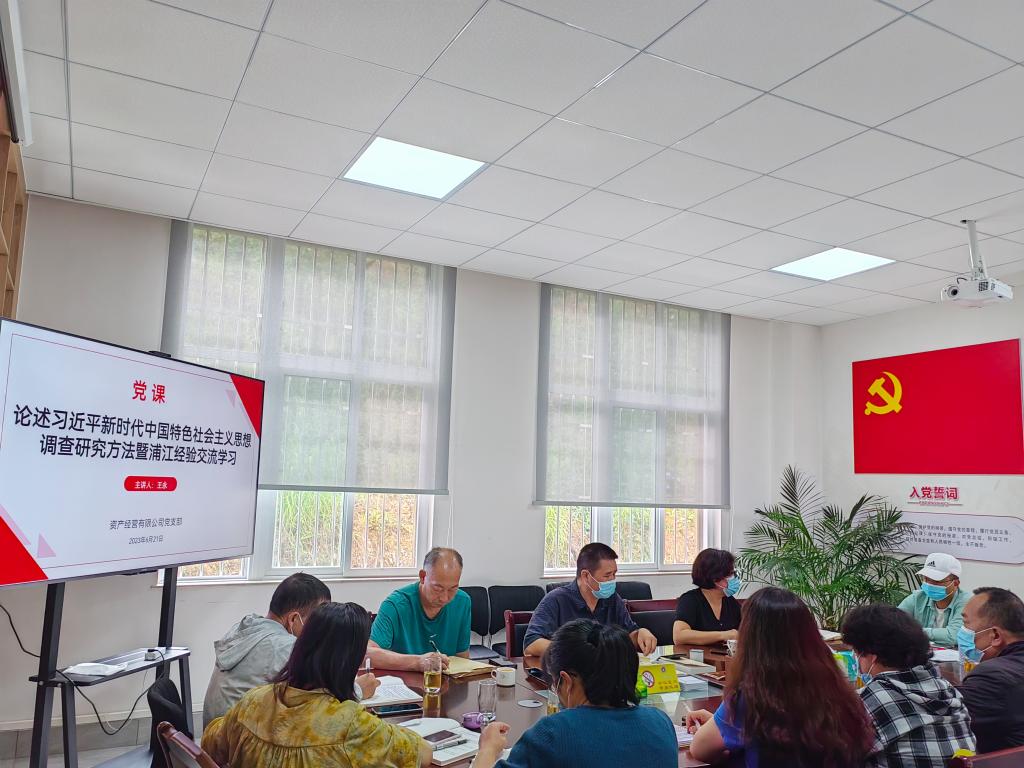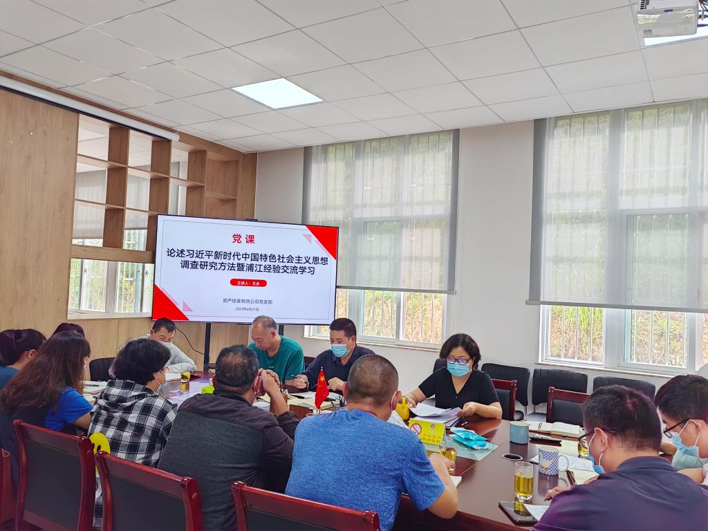 按照《中共玉溪师范学院委员会关于深入开展学习贯彻习近平新时代中国特色社会主义思想主题教育实施方案》的要求部署,资产经营有限公司党支部积极开展相关学习活动,6月21日上午在公司党员活动室组织学习《习近平关于调查研究论述摘编》节选及浦江经验交流分享专题党课,党课由公司总经理王永主讲,公司全体党员参加会议。