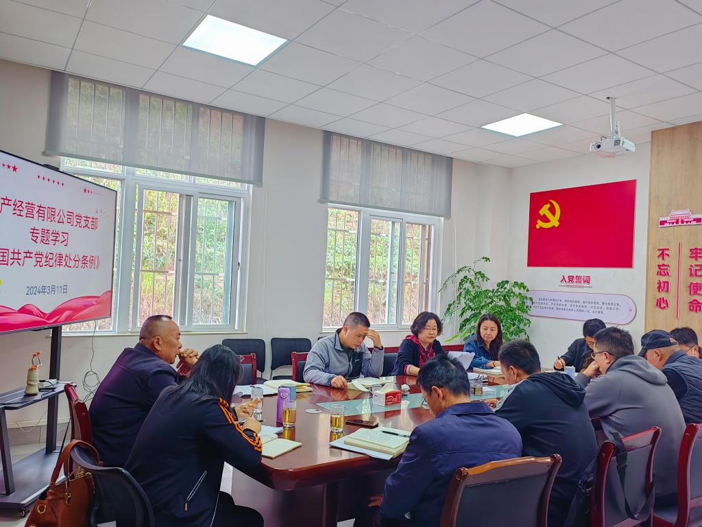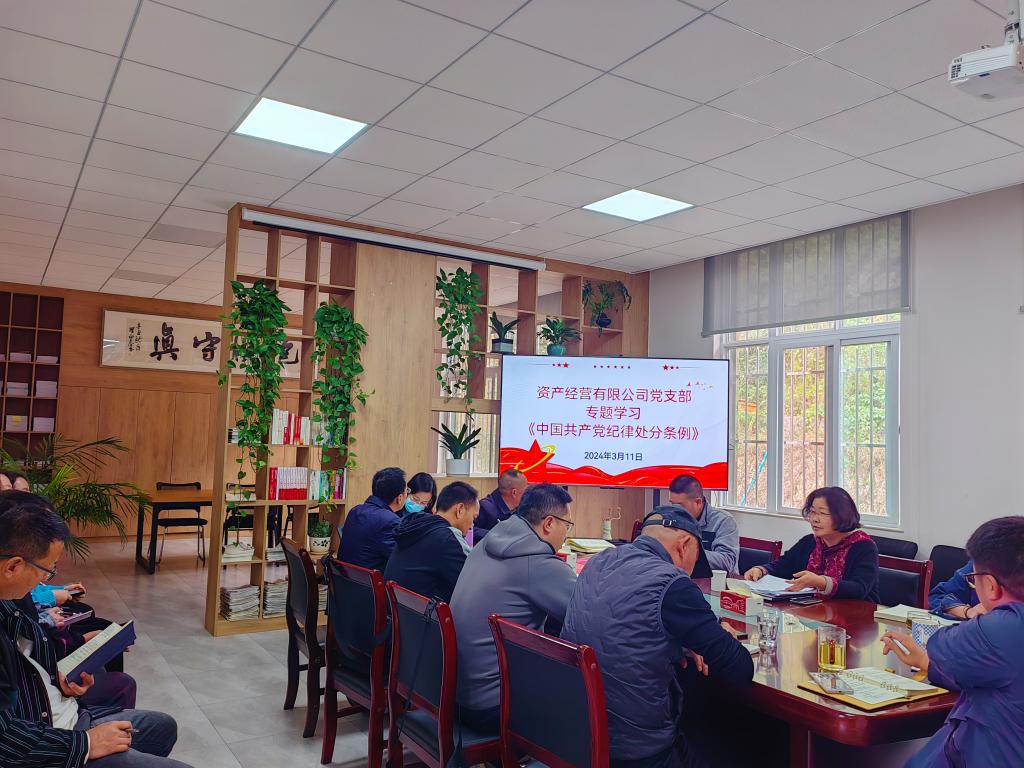 为贯彻党的二十大精神,落实全面加强党的纪律建设战略部署。3月11日上午,资产经营有限公司党支部在公司党员活动室,组织全体党员、非党干部及各部门管理骨干专题学习《中国共产党纪律处分条例》,支部书记李石屏主持会议。