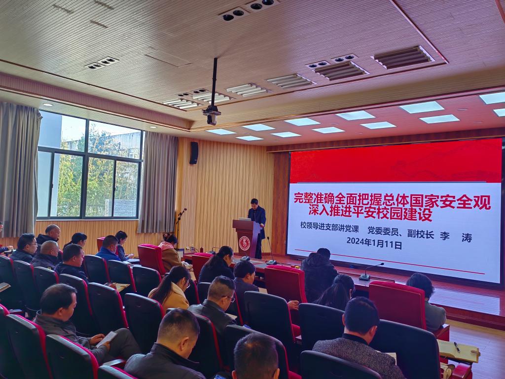 本次党课围绕求是文章《牢固树立和践行总体国家安全观谱写新时代国家安全新篇章》中关于“完整准确全面把握总体国家安全观深入推进平安校园建设”篇幅展开。李涛副校长结合平安校园建设工作实际,要求全体党员干部要深刻领会总体国家安全观的重大意义和贡献,更加坚定推动各项工作发展和安全深度融合,各部门强化统筹协调、加强联动,压实各方责任,做好学校学生安全、校园安全、食品安全等要素保障,不断提高应对风险的能力水平,全面助力平安校园建设。