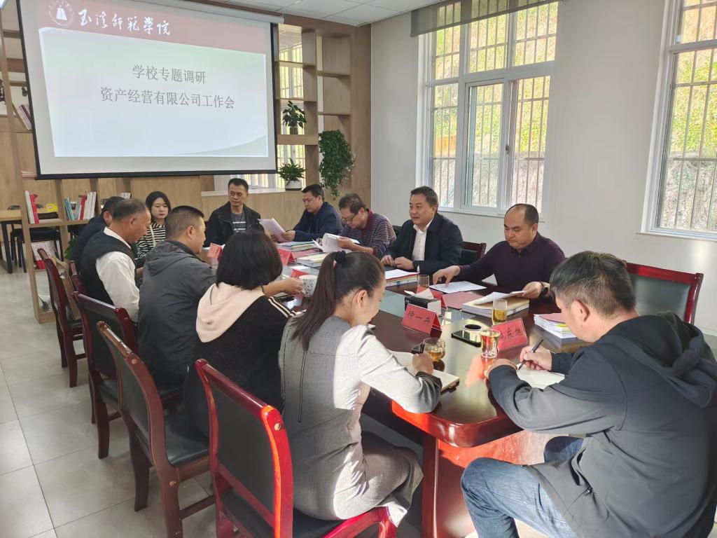 10月20日下午,校长段红云、副校长李明、杨伟、李涛、学校办公室副主任李杰、秘书科科长普通等一行,到资产经营有限公司调研指导工作。调研工作会在公司会议室举行,公司班子成员、各部门负责人参加了调研工作会。