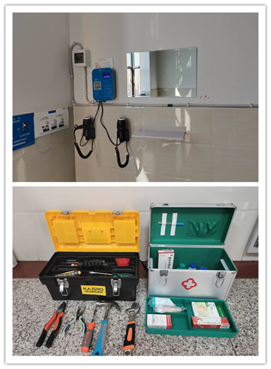 设置爱心屋、微波炉、体重秤、爱心伞、急救包、衣冠镜、针线包、工具箱等多项便民设施,关心学生身心健康,帮助学生解决问题。