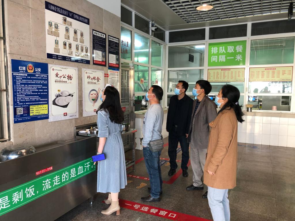结合省人民政府教育督导组、玉溪市教体局及相关部门对学校春季学期综合督导检查情况,聚焦3.15国际消费者权益日公众关注的食品安全问题,3月16日上午,学校党委委员、副校长杨光组织后勤服务中心、资产经营有限公司及纪检处,对学校食品安全管理工作开展专项检查。