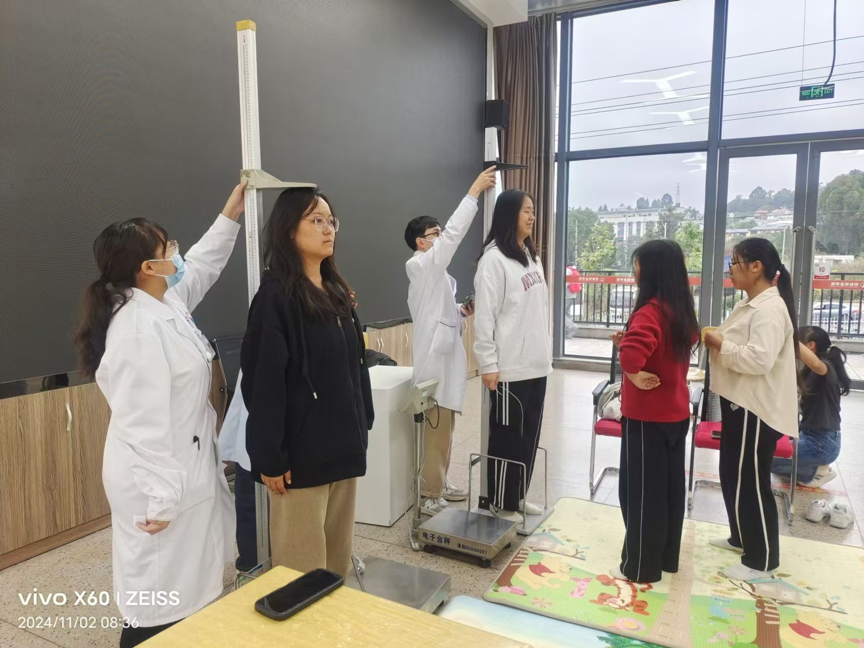 后勤服务中心高度重视此项工作,在教师教育学院的支持配合下,收集参与学生常见病和健康影响因素监测六个班级同学的相关信息,并以班级为单位,安排学生利用手机参与问卷调查,填写完成《学生健康状况及影响因素调查表(大学生版)》;11月2日,后勤服务中心医务室在大学生活动中心组织学生参加体检,包含视力、牙齿、身高等项目的实地监测,进而确保2024年云南省学生常见病和健康影响因素监测与干预工作圆满完成。