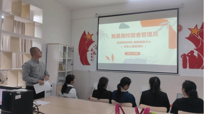 为全面提升学生公寓宿舍管理服务水平,筑牢校园安全防线,10月15日上午,玉溪师范学院后勤服务中心组织开展了全体宿舍值班员业务技能培训。本次培训由学生公寓管理科宁文阳老师主讲,旨在强化宿舍管理员队伍的专业素养与应急处置能力。