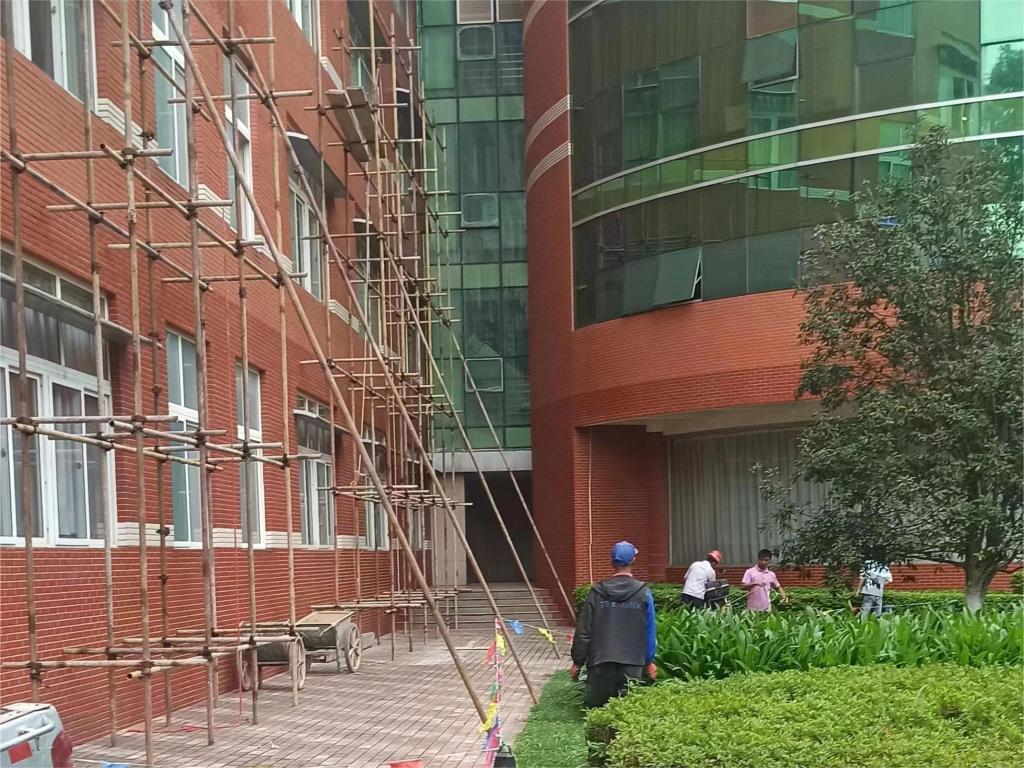 11.完成学生社区、学生食堂修缮;图书馆外墙瓷砖修复;校园内损坏沟盖板更换;龙马公寓靠山体一侧裸露地面砂浆涂面处理;校园周边围栏、围网查缺、补漏、修复等校园零星修缮。