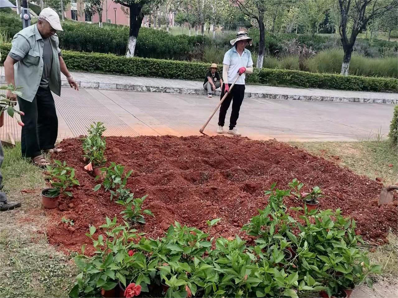 8.按照采购程序,完成学校东大门主干道中心隔离带绿化改造任务,栽种扶桑花650株、木春菊1800株、长春花2000株、红花檵木39株等。