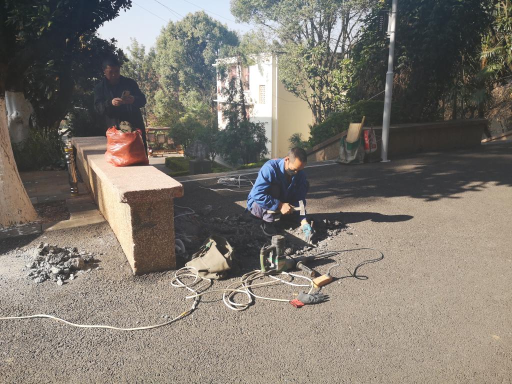 9.完成第一办公楼四楼会议室修缮、 校园安全围网围栏修复、美术楼屋面防水修复改造以及校园路面破损、路沿石损坏修复、排水沟破损盖板更换等零星修缮项目。