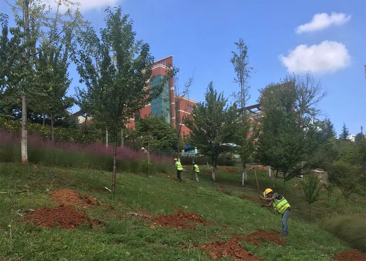 17.开展“绿美校园”建设植树活动,栽种红叶李450株、西府海棠400株、贴梗海棠200株、蓝花楹200株、桂花200株、肋果茶200株、球花石楠200株、滇润楠200株,不断拓展校园绿地绿量,丰富植物群落层次,展现植物季相变化景色,提升了校园绿化观赏品质。