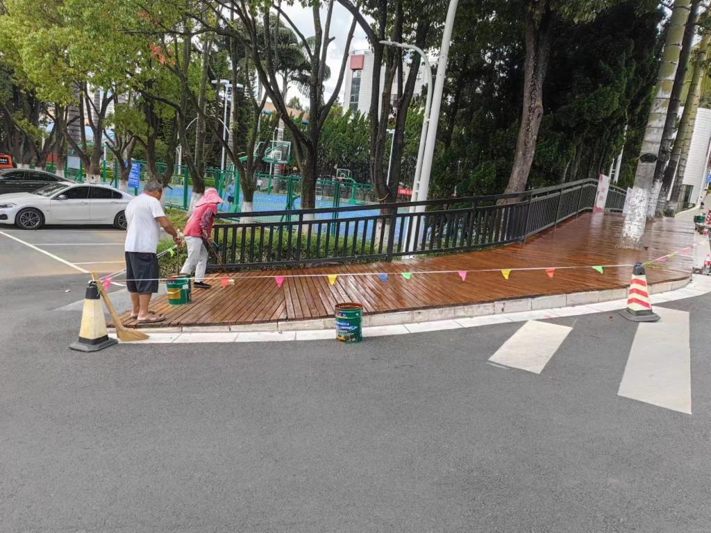 1. 完成一办组织部204室墙面修缮,学生健康中心、学生处、七教学楼前门长条凳子更换安装,五、六教学楼后方污水管网改造,考研自习室灯光改造,六教篮球场护栏、十三教侧面停车场出入口沟盖板、学生公寓K幢护栏维修,红塔山中轴线靠九栋方向石头脱落墙体修缮,西门片区木栈道翻修改造,东樱坡台阶、14教侧面、七食堂后面盖板、1号博士楼等零星修缮;对学校外围破损围栏进行整体修复。
