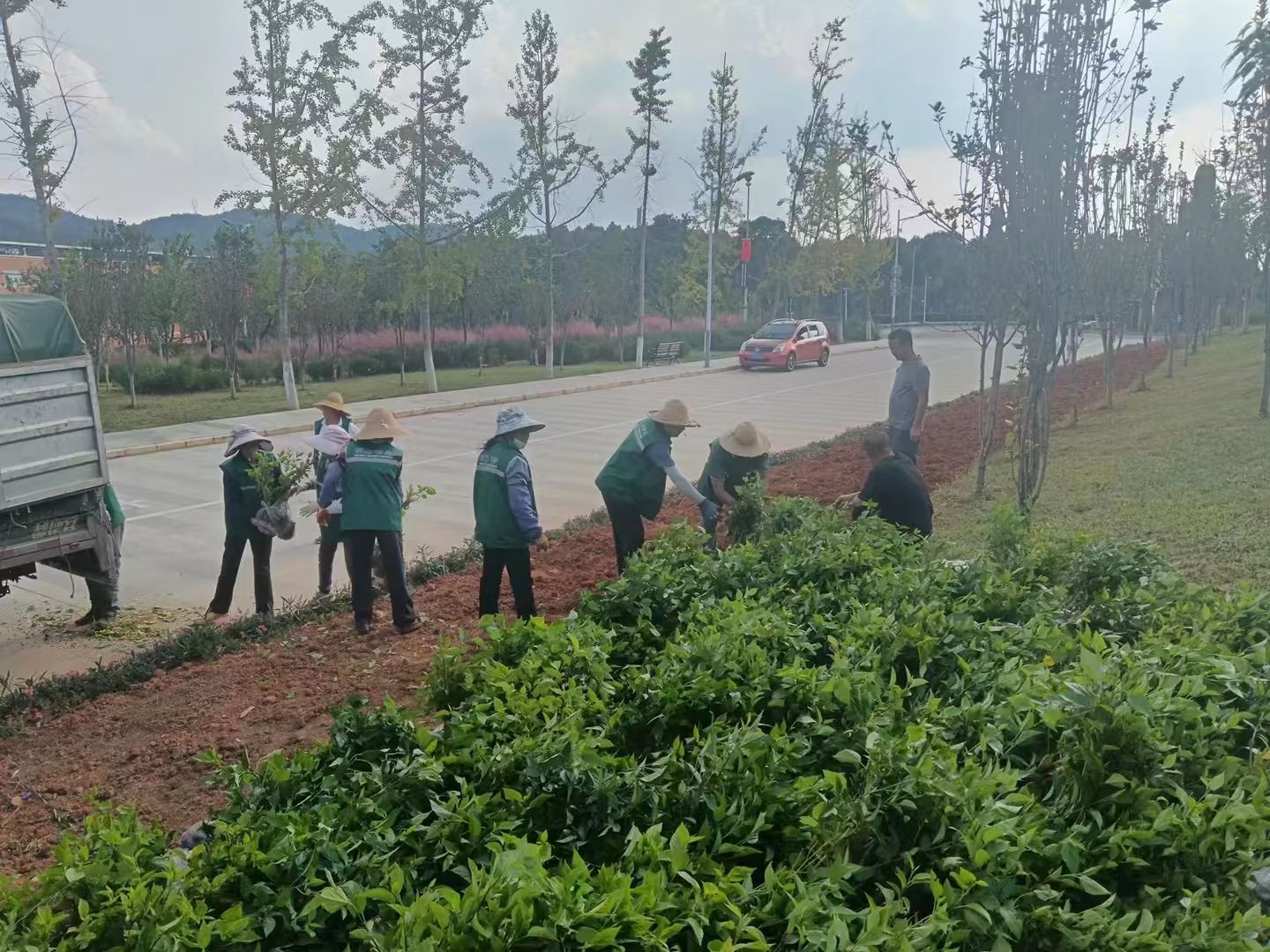 2.适时修剪学生公寓、教职工宿舍周边、主干道两侧、教学片区、办公区等区域的绿篱、草坪;清除杂草、枯枝并清运绿化垃圾12车;及时对校内植物开展修剪、施肥、浇水等养护工作,共施肥0.8吨;布置会场、东门、开学典礼、军训汇报表演盆花;一办踏步布置菊花景点,营造国庆节日氛围;更换艺术教学楼旁景观中轴线干道路边花卉苗木;全面消杀红火蚁2次。