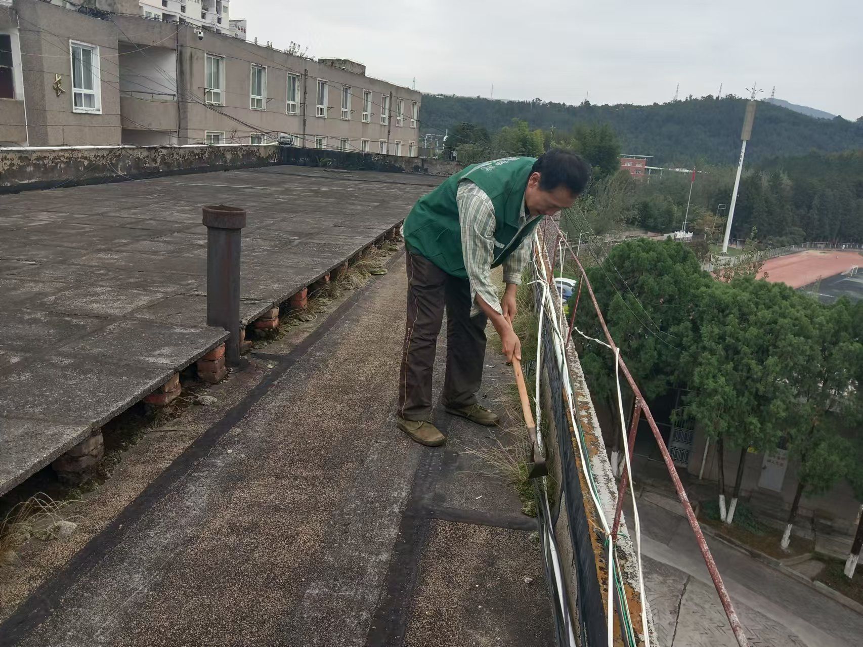 3.持续做好山林防火、防汛抗旱工作。加强山林火灾隐患巡查,检查防火标识是否明显,及时给消防水桶、垃圾桶储水缸补水,清扫步道两侧枯枝落叶,清掏山林排水沟;对抽水房设施设备、水体周边、边坡挡墙等进行安全排查,打捞水体杂物,清理排水口滤网,保证溢水口、排水口管网畅通;清扫教学楼、办公楼楼顶垃圾,清除杂草、排水口堵塞物、积水,保证楼顶排水畅通。