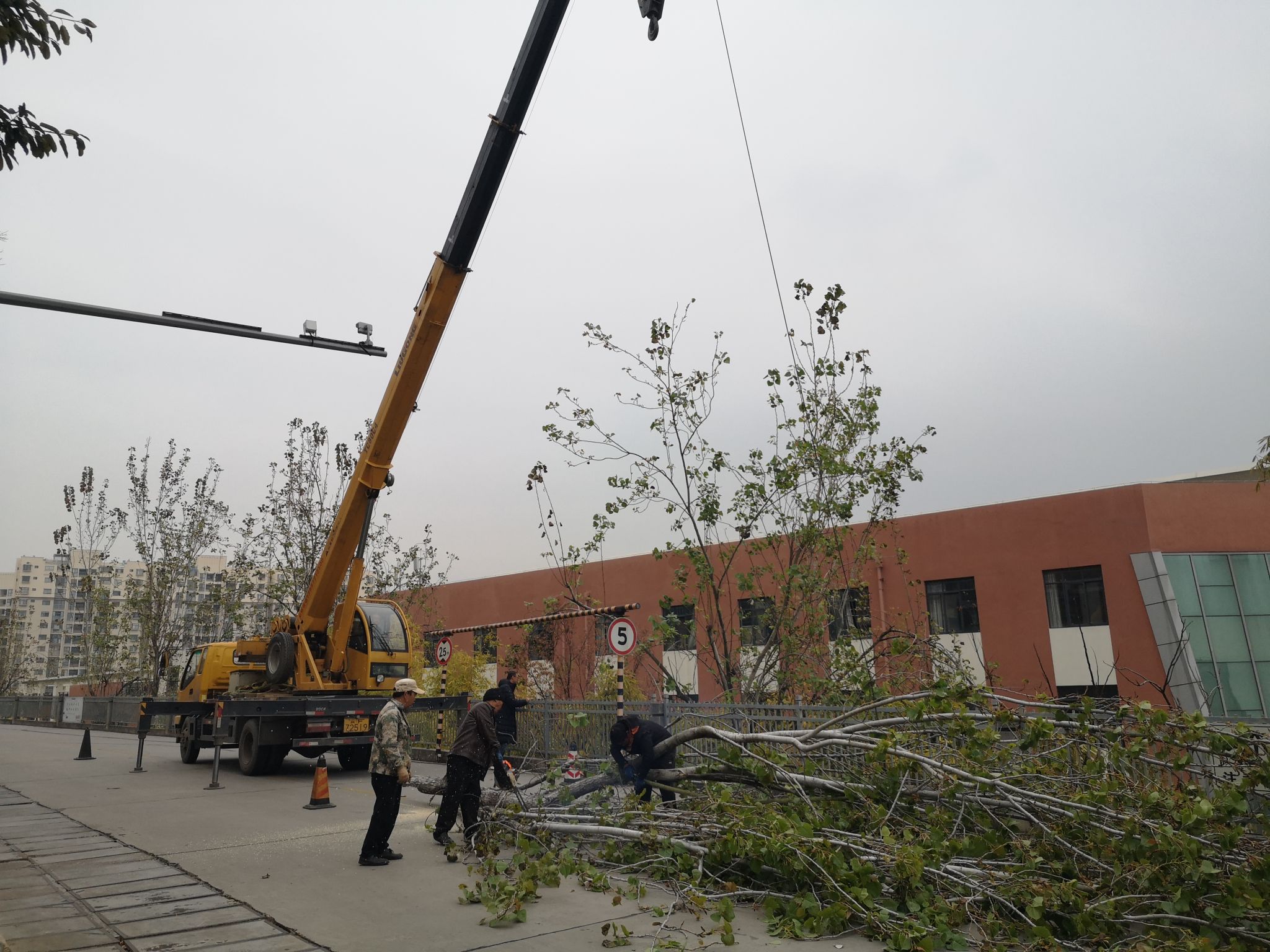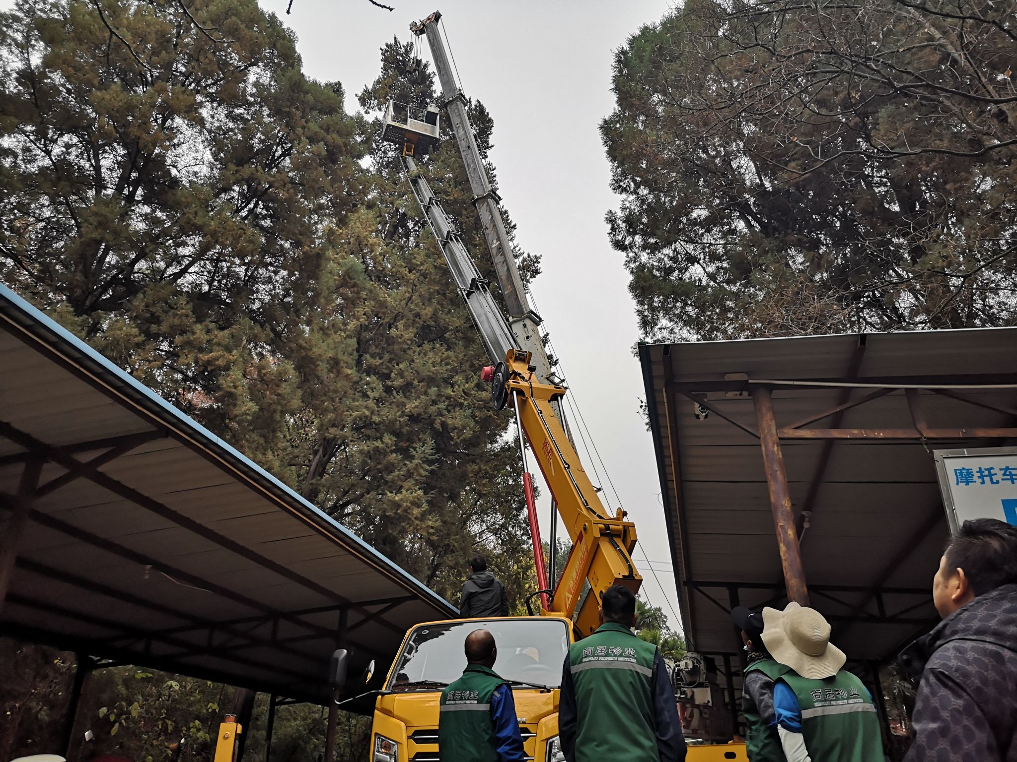 校园高大树木枝条修剪