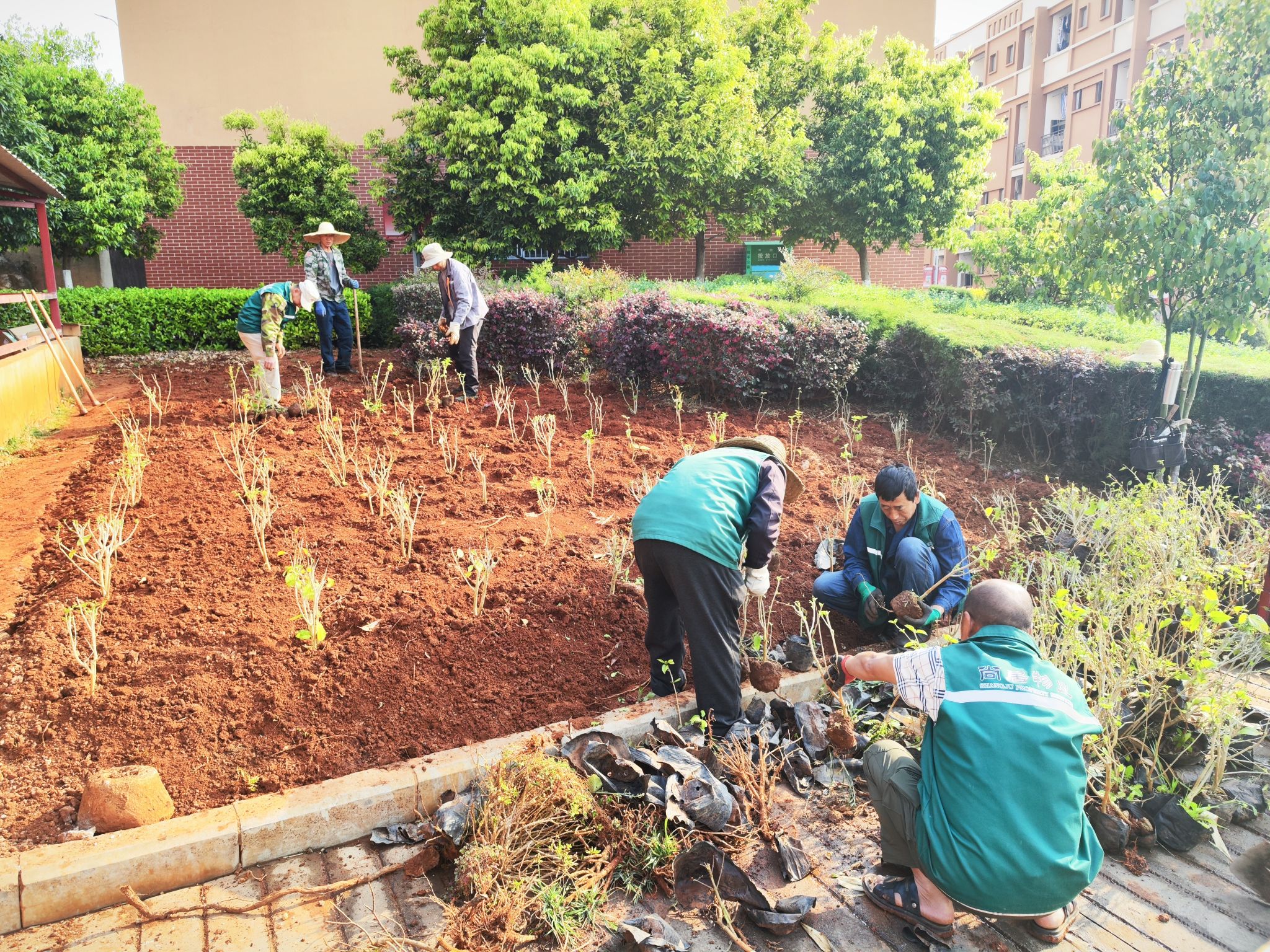 2.强化校园环境绿化改造建设,更换改造西门花卉、苗木,学生公寓N幢侧边栽种扶桑花;修剪校园树木过长树枝;做好抗旱保水、除杂、苗木培育等常态绿化作业;开展病虫害防治、红火蚁灭杀工作;洒水车共浇水37车;绿植施肥200KG,清运绿化垃圾21车;联合学校团委组织100余名学生开展自然林除杂志愿环保活动。