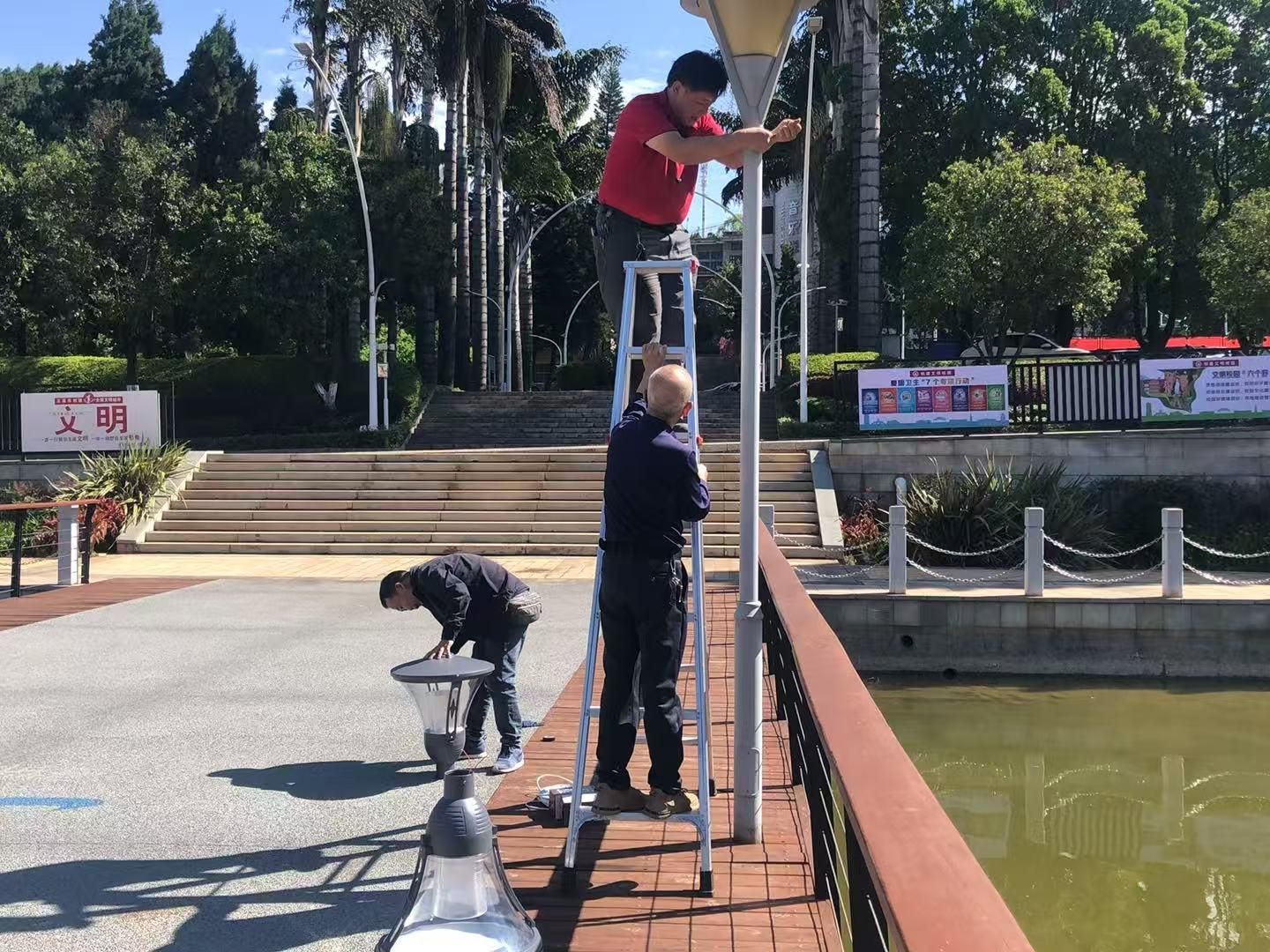 2.开展校园水电供给设施设备的日常巡查及维护,完成风雨馆到琴房区域路灯、西门灯头、三元楼水龙头、老传习馆插座、学生公寓F幢532管道井、学生公寓C幢407管道井、2号配电室电机房卷帘门、西门路灯、美术学院办公室插座、图书馆楼顶射灯、东门主干道路灯、艺术楼主干道路灯、六教401下水管、十二教楼顶消防管、学生公寓G幢楼顶水箱及太阳板、六教1楼男卫生间天花板、六教107下水管、龙马公寓楼顶配电箱、学生公寓M幢大号回水管等楼幢及公共区域水管破损、灯具故障、跳闸断电、电源搭接、水电设备安装等水电零星修缮43项。