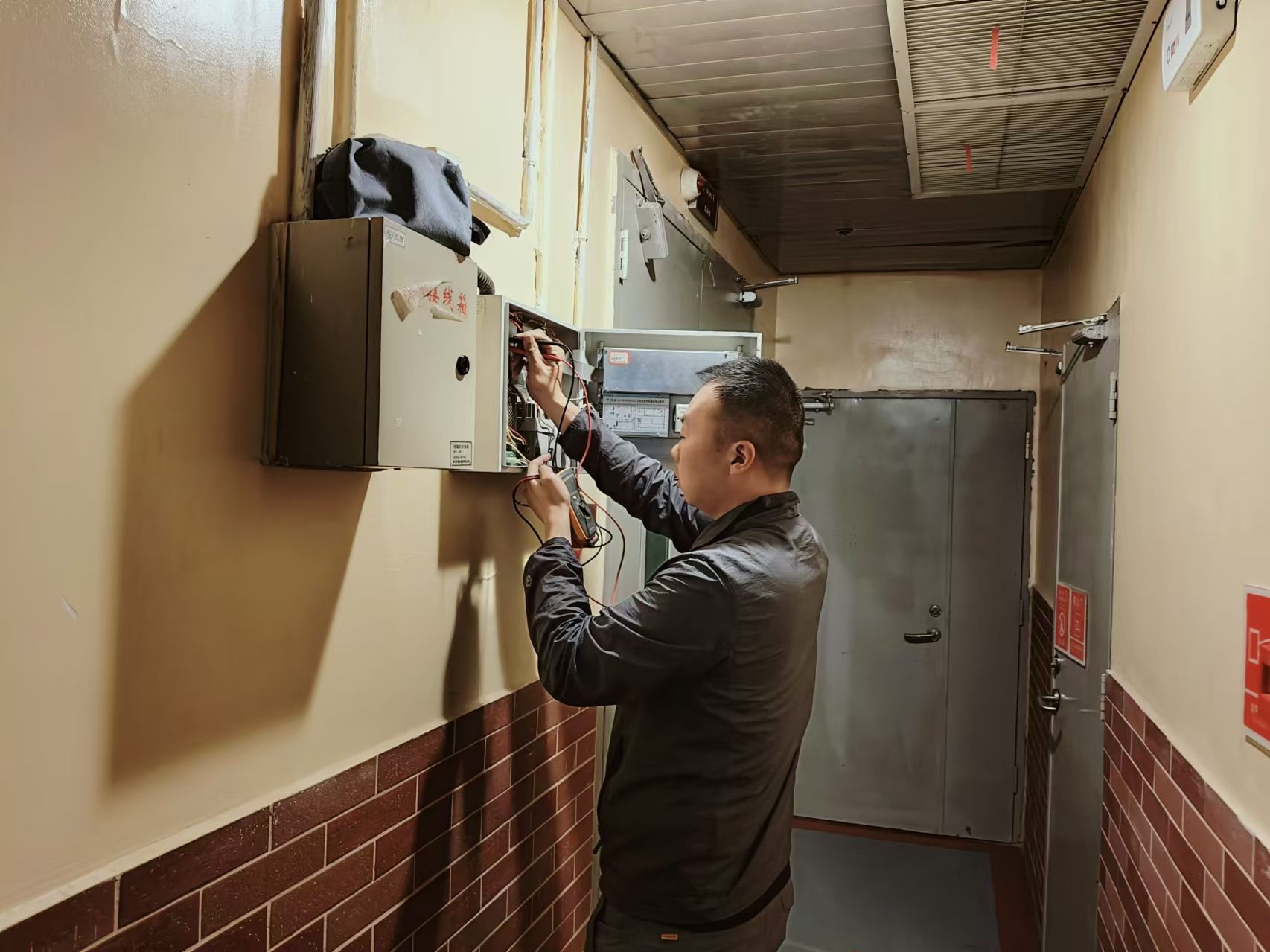 维修H幢负一层配电室门口气体灭火控制箱故障