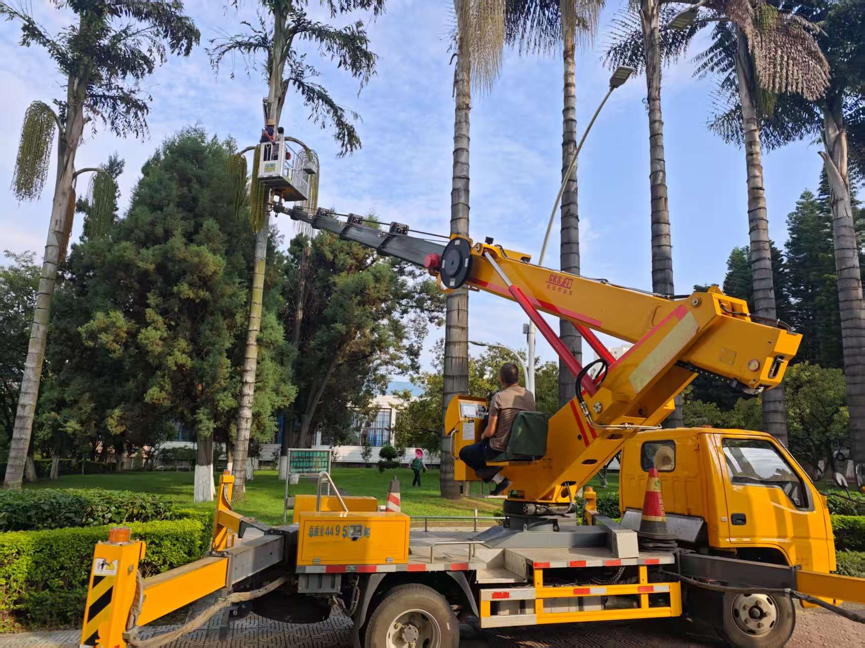 2.改造校内局部绿化带;加强树木巡检,对多处枯枝、生长过长遮挡道路及有安全隐患的树枝进行修剪;持续做好除杂、苗木培育等常态绿化作业;开展病虫害防治、灭杀红火蚁工作;洒水车共浇水5车次、绿植施肥300KG、清运绿化垃圾13车。