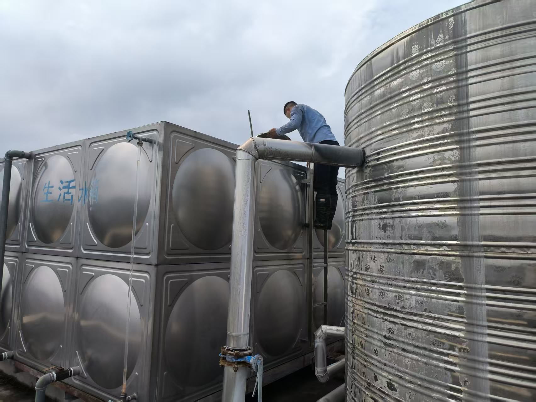 4.完成年内第二次全校中转水池、山顶水池、食堂、学生宿舍、教学楼等屋顶二次供水蓄水池(水箱)的全面清洗消毒工作,更换安装部分损坏的阀门、浮球阀等管路设备。