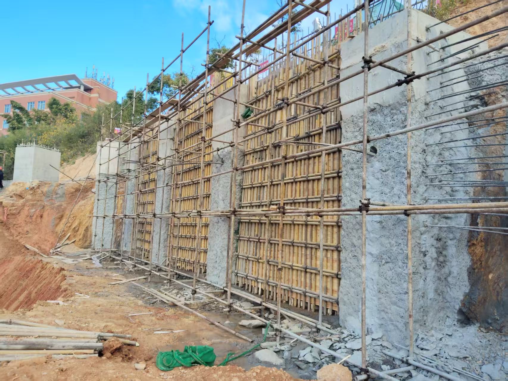 2.有序推进学生宿舍建设项目施工,完成P栋抗滑桩施工1#-3#桩混凝土浇筑、1#人工挖孔桩施工钢筋笼制作;2#、3#人工挖孔桩成孔、钢筋安装;O栋墙背土方回填、机械钻孔抗滑桩、人工挖孔桩下部施工、塔吊基础浇筑、新增挡墙基础开挖、垫层浇筑;外电改迁、消防水管改管保通;1#配电室主体框架;2#配电室场地平整;截至12月25日,累计完成123根主体桩基(含试桩),完成率75.5%;抗滑桩22根,完成率100.00%。