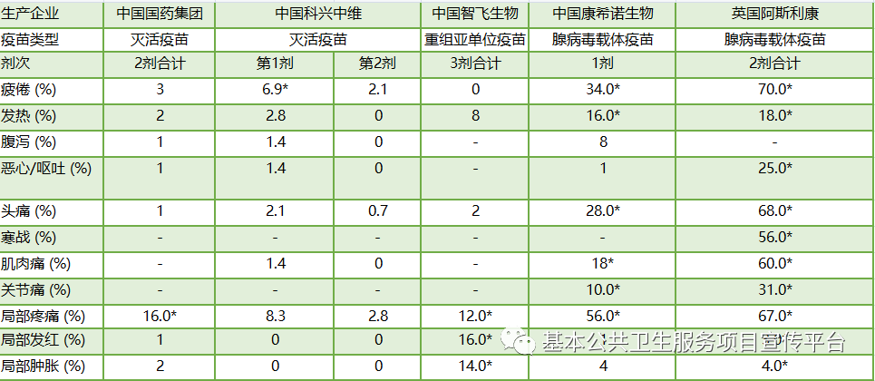 我国4款新冠疫苗与阿斯利康新冠疫苗临床试验安全性数据