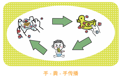 2. 细菌 常见的细菌有沙门菌、大肠埃希菌等,多半是进食了被细菌感染的食物或水引起。它们也能通过手 - 粪 -手等途径传播,所以也会在人群中相互传播。这样一来,认真洗手就成了预防传播的主要措施了。