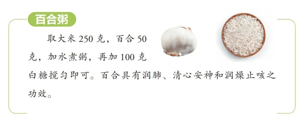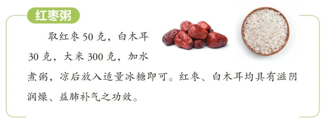秋三月是指立秋后的七月,白露后的八月和寒露后的九月,包括立秋、处暑、白露、秋分、寒露、霜降六个节气。秋燥当令,早秋多温燥,晚秋多凉燥,人们往往会有口干舌燥、皮肤干燥、大便干结等一派燥象。因此,秋季以滋阴润燥为食养的主要原则。