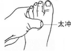 取穴:太冲穴位于足背大脚趾与第二足趾之间;