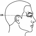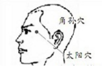 取穴:太阳穴位于眉梢与外眼角中点后一横指的凹陷处。