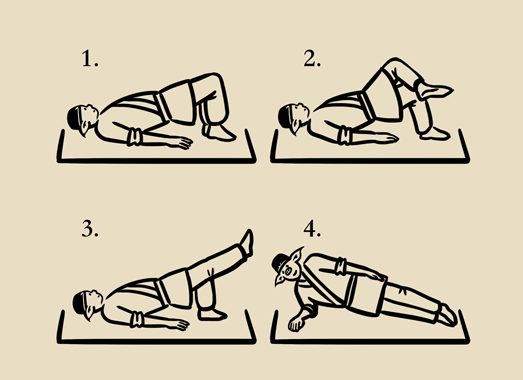 以上每个动作持续 6~8 秒,重复 8~10 个动作为 1 组,每次 2~3 组,每周 2~3 次。两次肌力训练间隔 48 小时。