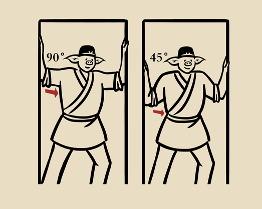 双手扶墙,上臂外展 90 度或 45 度,上身前倾,保持数秒。