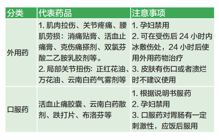 根据您家庭成员的常见症状,上述外用及口服药品家庭常备一至两种即可。针对扭伤拉伤需要注意的是,如果遇到下面情况时,建议您尽快去医院就诊: