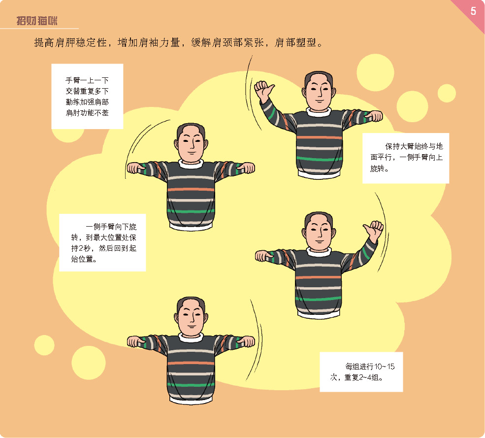 效果:提高肩部灵活性和肩胛稳定性,缓解肩颈部紧张。