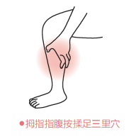 日常保健按摩手法:用拇指指腹按揉,反复 20~30次。