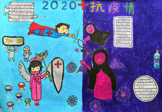 在2020年 “六一”国际儿童节,学校关心下一代委员会、工会、妇委会联合举办“童心守护 爱国爱家”教职工子女书画作品线上展示活动,活动一共收到各个年龄段的作品32幅,最小的4岁,最大的12岁。小朋友们放飞想象力和创造力,用画笔展现童心世界,用画笔赞美抗击新冠肺炎疫情的英雄,表现出小小玉师人的别样风采。孩子们用自己的理解充分展示了对抗击疫情的决心和信心,相信疫情将被最终击败,相信我们的未来必将越来越美好。