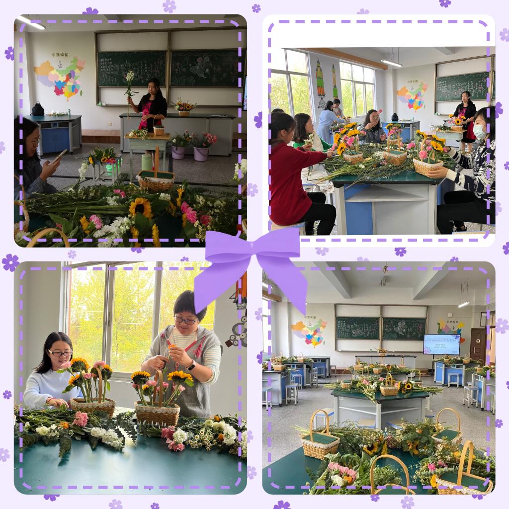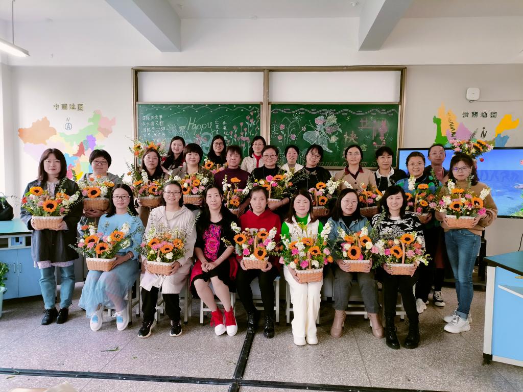 此次活动邀请教师教育学院张洁老师讲授插花知识及技法,技法精湛的张老师首先为大家介绍鲜花的品种和寓意,再从花材选取、枝叶绑剪、色彩搭配等插花技巧进行讲授,并同步演示了插花工具的使用和插花步骤。活动现场花香四溢,充满了欢声笑语,大家兴致盎然一边相互借鉴交流,一边着手创作,结合花材特点,经过取材修剪、色彩搭配,各种花卉经过女同胞的精心修剪后,变成了一盆盆错落有致、赏心悦目的艺术品。大家感受着花草之美、自然之美的同时,也感受到了学校的深切关爱。