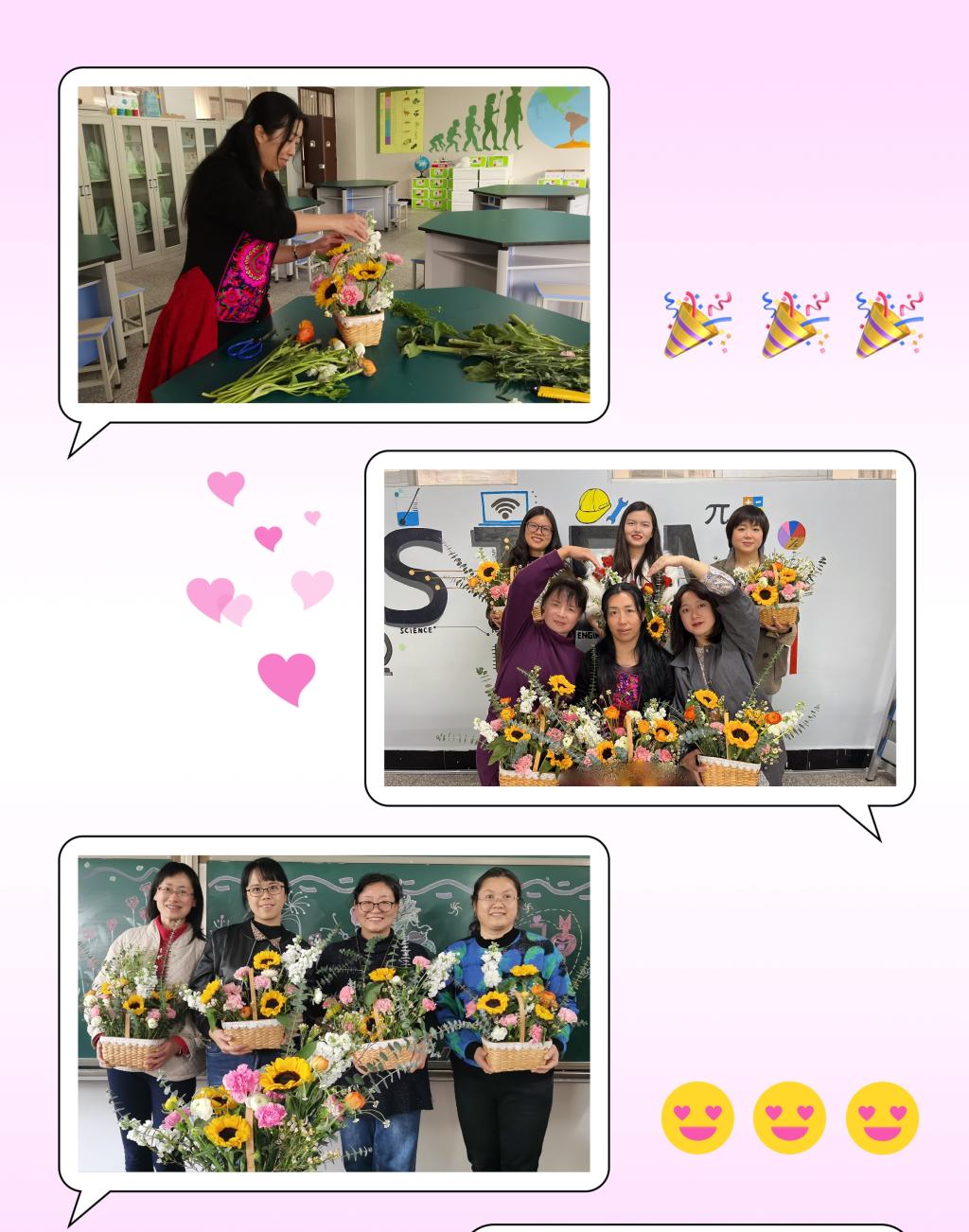 为庆祝“三八”国际劳动妇女节,学校于三月开展“巾帼建功”活动月暨“三八”国际妇女节纪念活动。3月7日下午,我校妇联、工会共同组织开展了以“花漾生活 幸福绽放”为主题的插花活动,党委书记姜家雄,党委副书记、妇联主席杨光亲临插花现场看望女教职工并致以节日的祝福与问候。