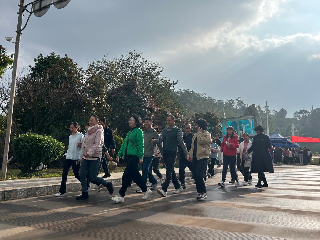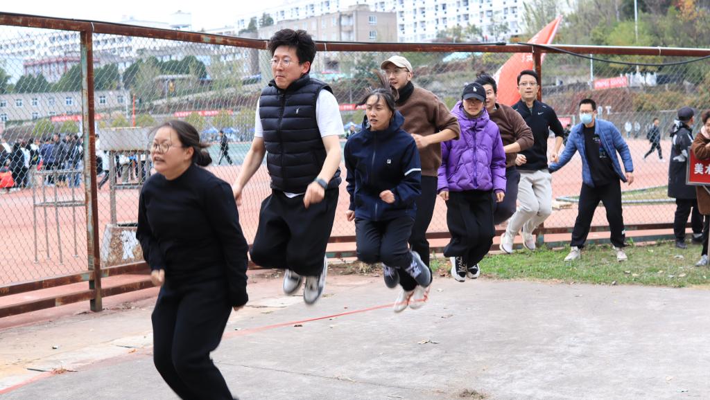 12月6日上午,参加校园健步走活动的教职员工在学校东门领取起点卡后,沿着指定路线,走过教学楼、悠悠湖、健康步道,用行走与校园对话,用脚步丈量发展成果,让身心感受运动快乐。趣味运动会比赛现场,每支队伍斗志昂扬、全力以赴,赛场上掌声、笑声、加油声、欢呼声此起彼伏。