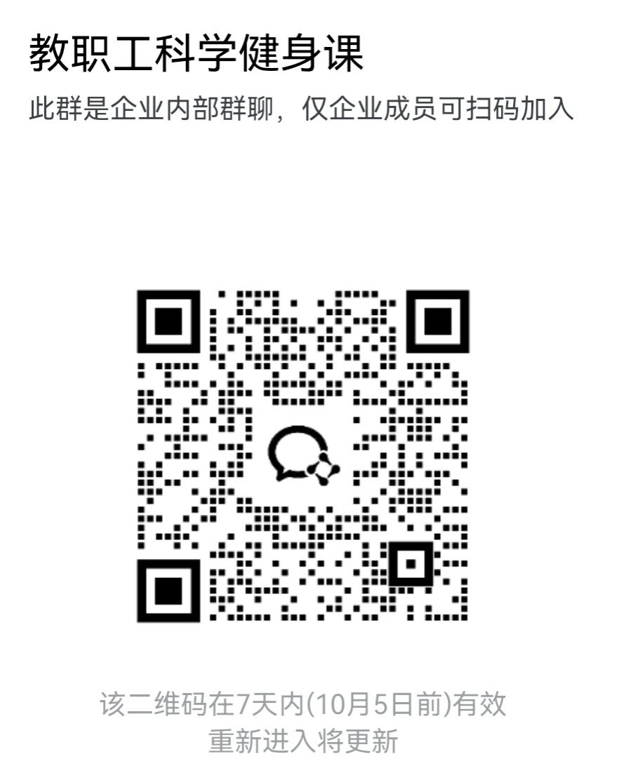 上课地点:健身房(风雨馆旁边工会职工活动室)