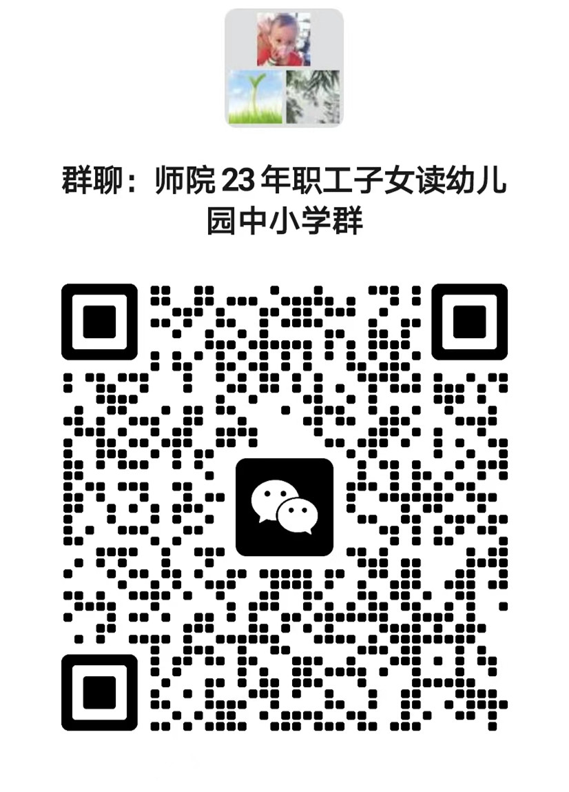 请有适龄儿童且符合就读要求的教职工认真填写相应表格,于3月12日前提交至周菊琼邮箱zjq@yxnu.edu.cn,并尽快扫码加入微信群“师院23年职工子女读幼儿园中小学群”,后续就读事宜将在群里通知,咨询电话680098、2054848(表格附后)。